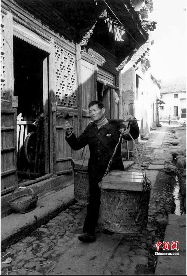 拨浪鼓、扁担和两头的货筐,是义乌人“鸡毛换糖”的标配。郑运福 摄,义乌宣传部供图