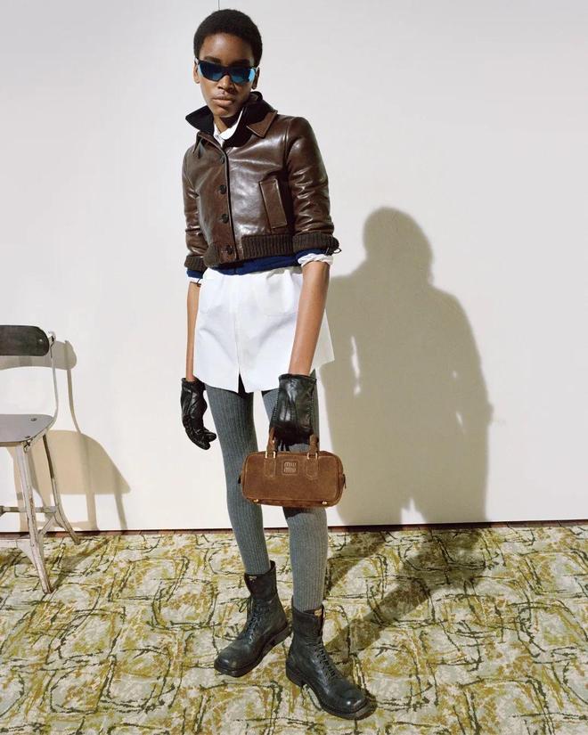 上榜的第二款手袋还是麂皮的,来自 Miu Miu。在 2024 秋冬秀场上,这只包就很吸睛。